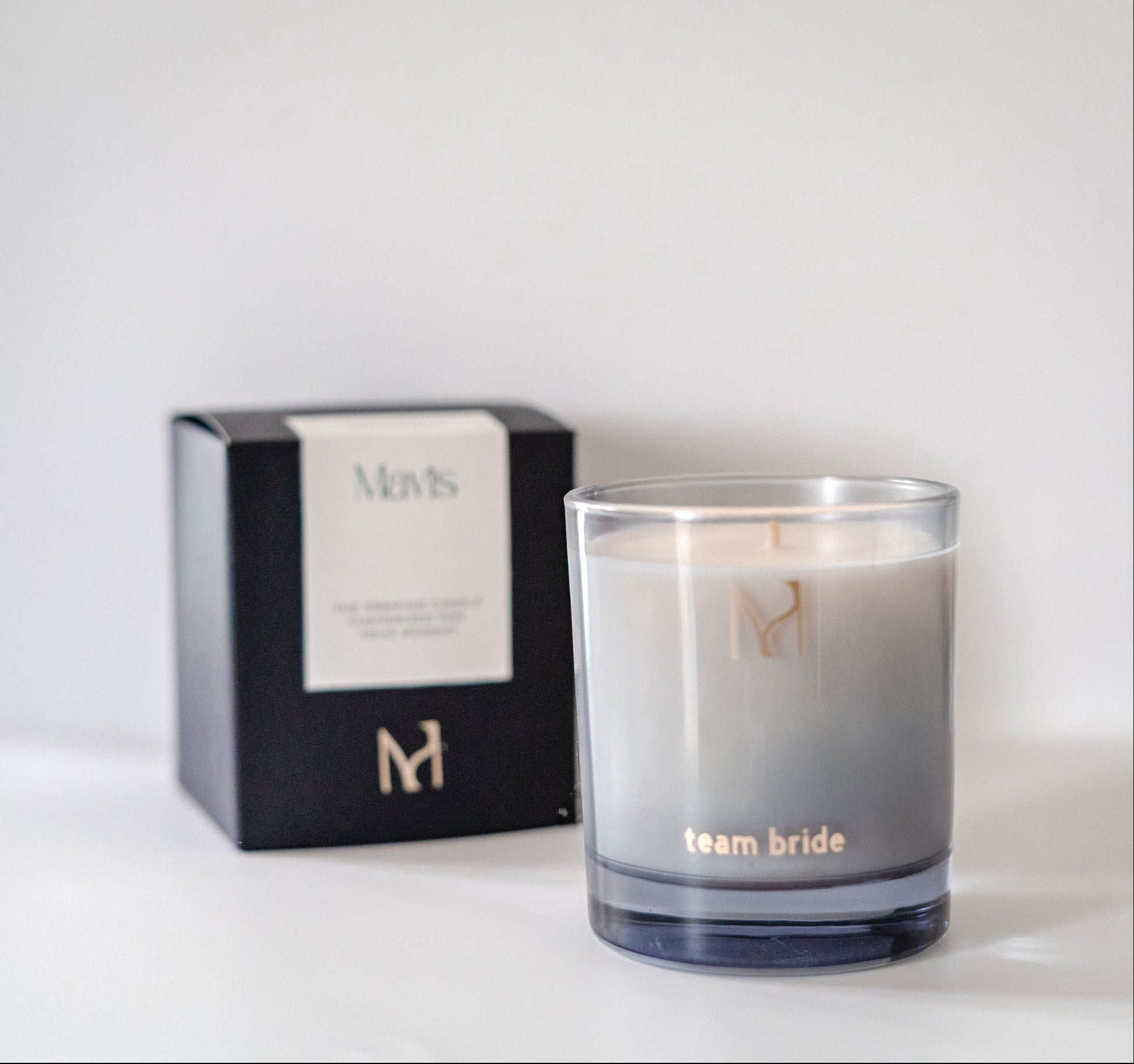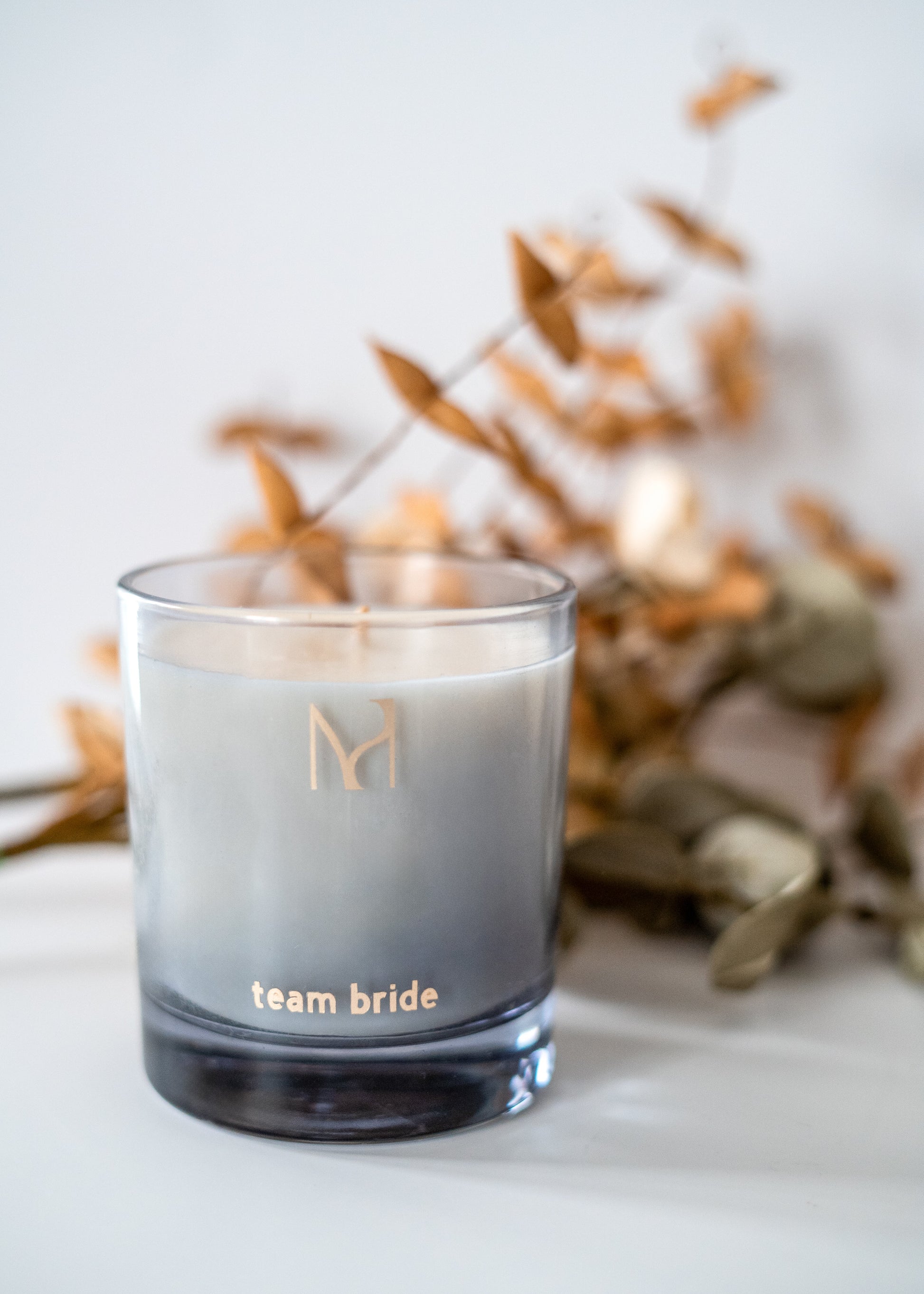 The "Team Bride" candle is an elegant and meaningful way to thank your bridesmaids, maid of honor, and everyone who stood by you on this journey. It's the perfect keepsake for a bachelorette party, or a thank you gift for helping to plan, celebrate, and accompany you down the aisle.